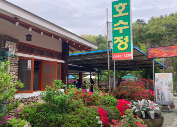 동네한바퀴 임실 동자개 매운탕 가게 호수정은 사선대에서 1년 내내 아름답게 꽃을 피우는 동자개 매운탕 전문점입니다. 사선대는 신선과 요정들이 아름다운 경치를 즐겼다고 전해지는 곳입니다. 주인 김순석 씨는 어릴 때부터 낚시를 좋아하셨던 아버지에게 배운 기술로 35년 동안 매운탕집을 운영해왔습니다. 일하는 아내를 위해 연못을 꽃으로 장식한 그의 남편 덕분에 가게는 늘 화려한 꽃으로 둘러싸여 있습니다. 호서정에서 사선대의 아름다운 경치와 함께 맛보는 동자개 매운탕은 그야말로 신선한 맛으로 부러움을 살 만합니다.